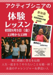 アクティブシニアの体験レッスンが出来ます!この機会にぜひいらしてください!